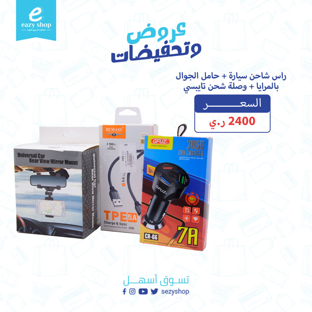 راس شاحن سيارة + توصيلة شحن تايب سي بيماس BS441 + حامل جوال على مراية السيارة