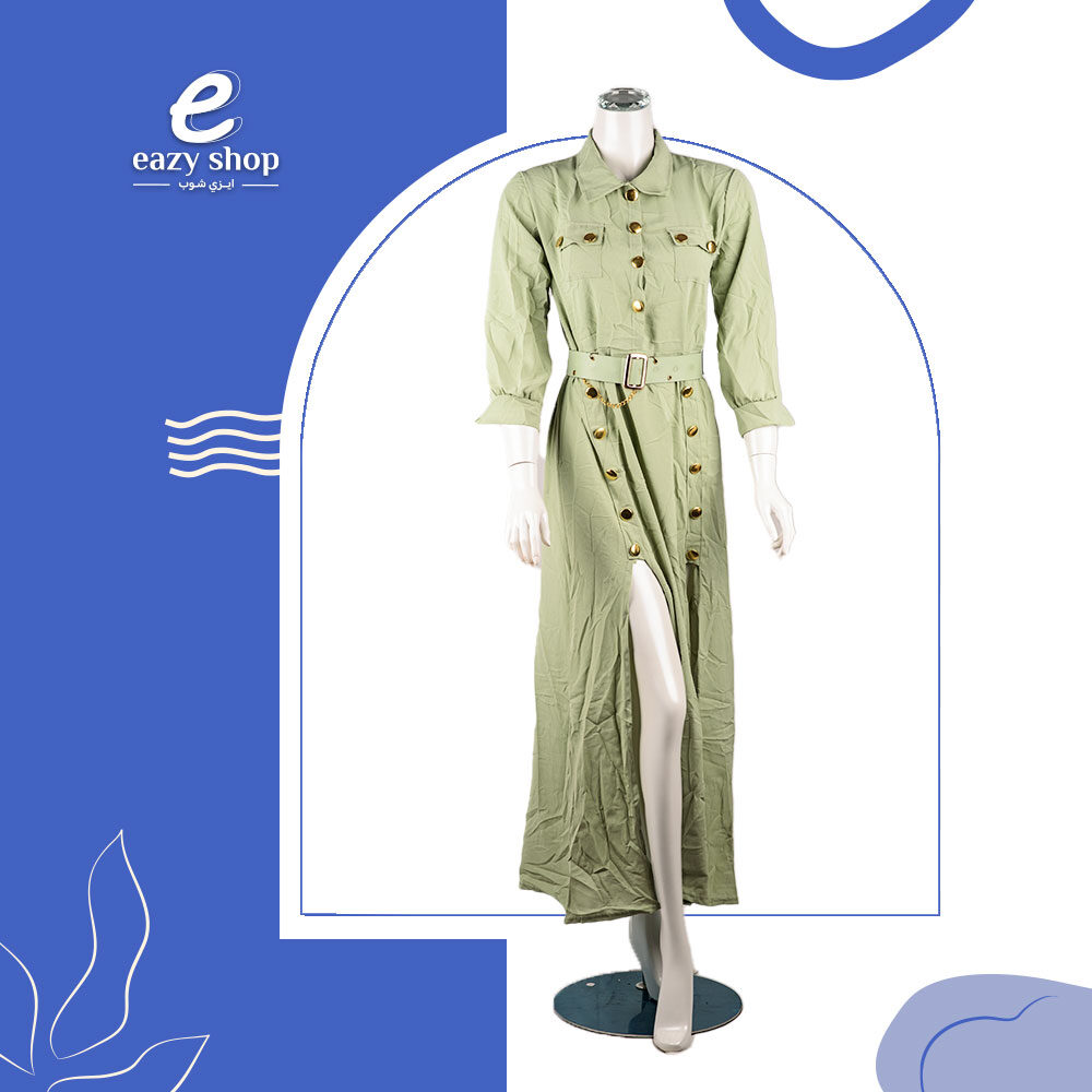 فستان نسائي مقلم تحت طويل أزرار صدر AW68