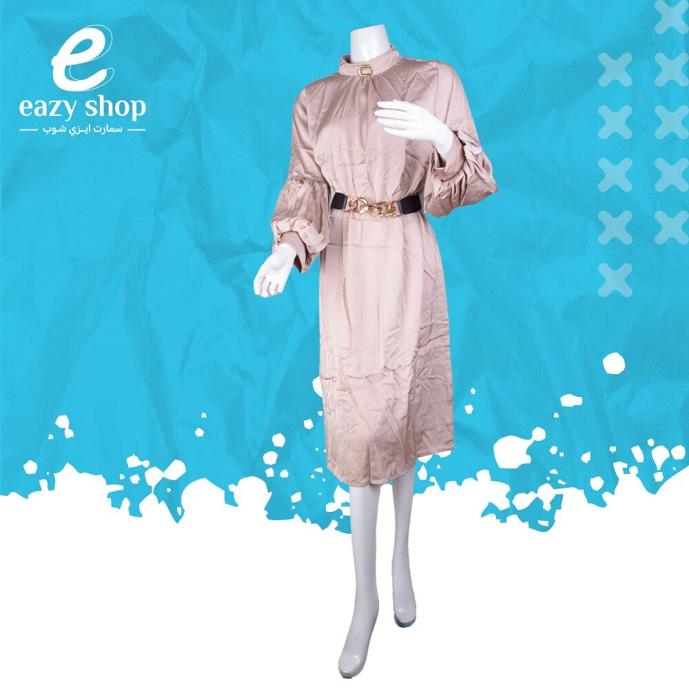 فستان ساتان خفيف مع حزام 8023