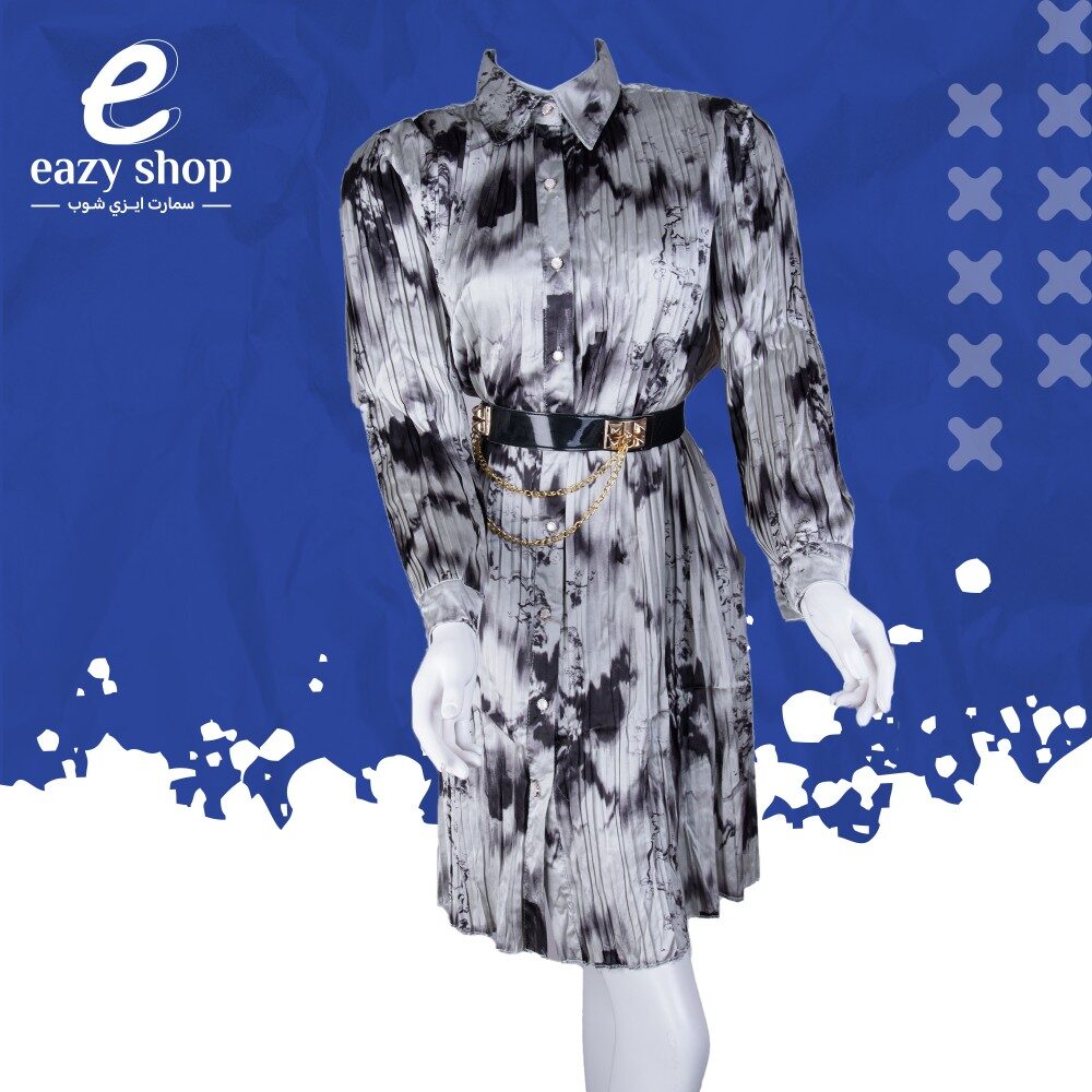 فستان نسائي ساتان قصير مع حزام 1189