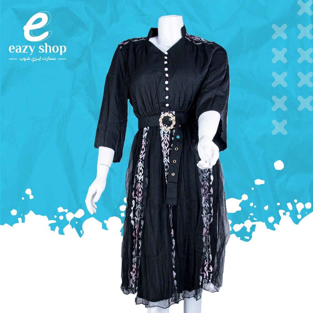فستان نسائي أسود زراير 1188