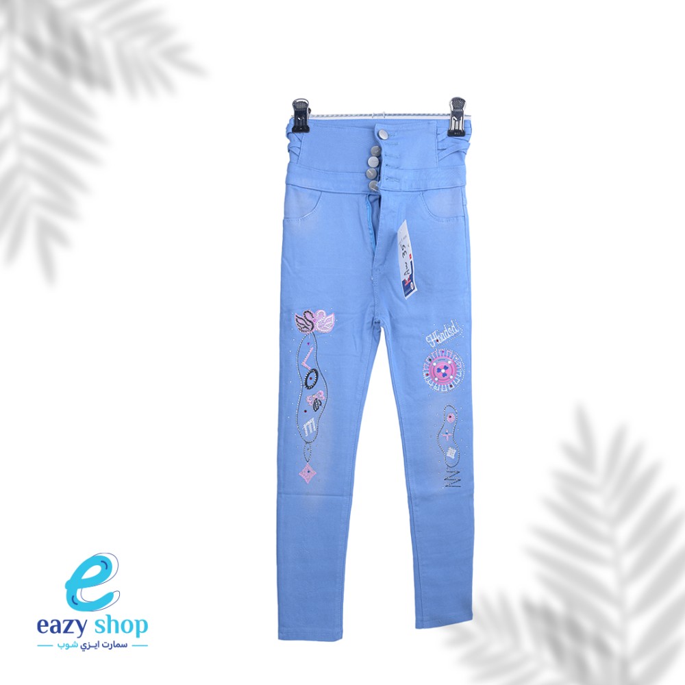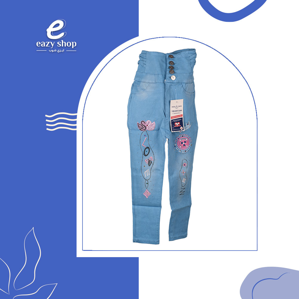 بنطلون بناتي جينز ابو لمبة وسط AW35