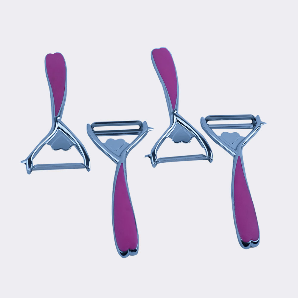 قشارة الخصروات المثالية لون وردي راس مصنوع من الفولاذ المقاوم للصدا ومقابض بلاستيكية مقاومة للإنزلاق صحية وآمنة غذائياً