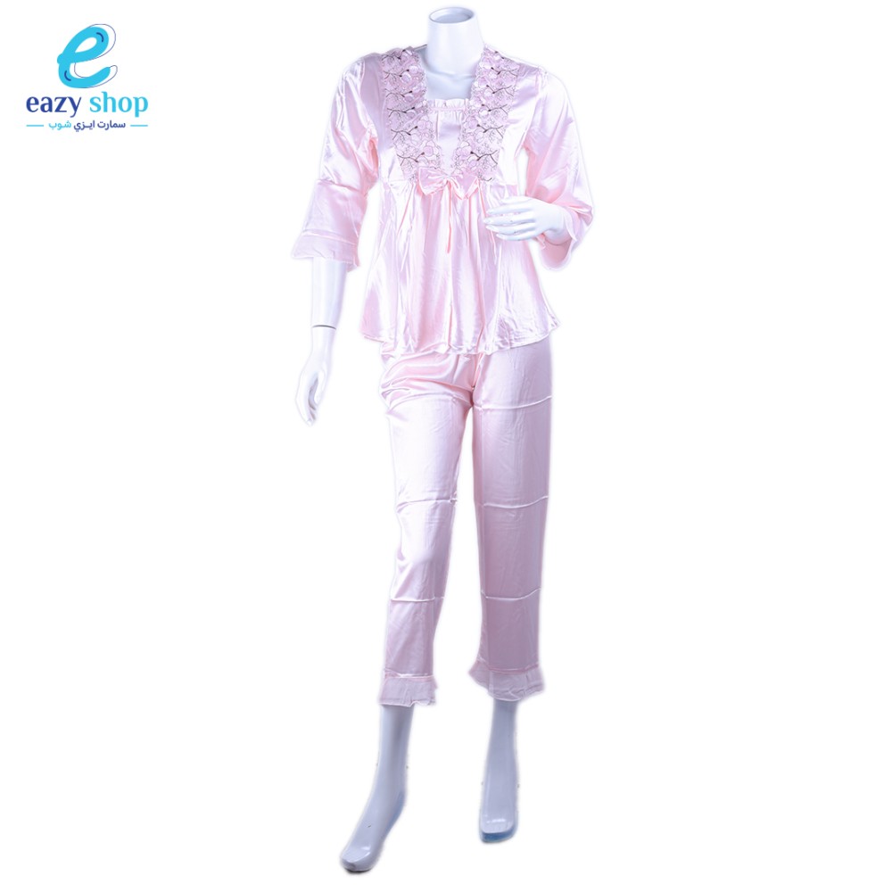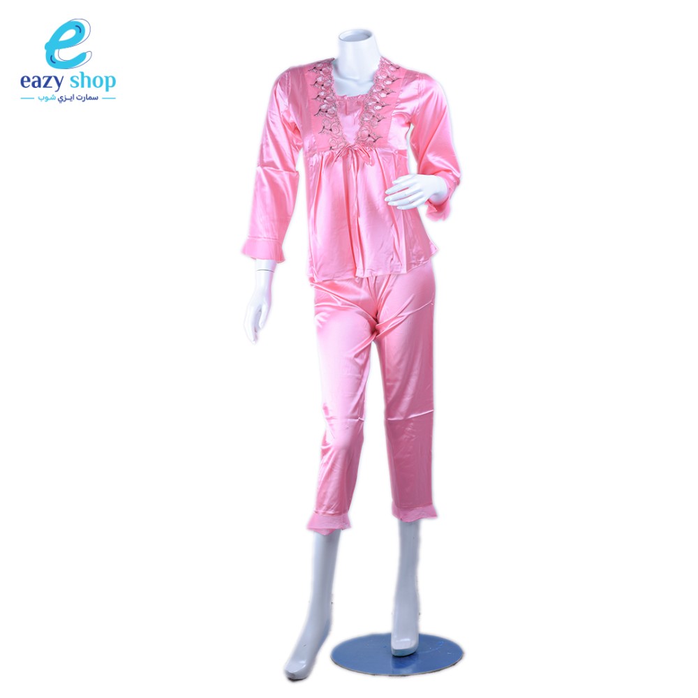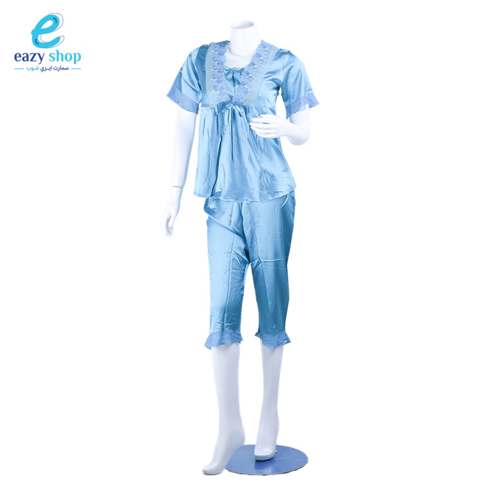 طقم بجامة نسائي انيق بملمس حريري ناعم يتكون من بلوزة مريحة دانيل وبنطلون بستايل كابري (طول متوسط ) يمنحك احساس بالنعومة بخصر مطاطي