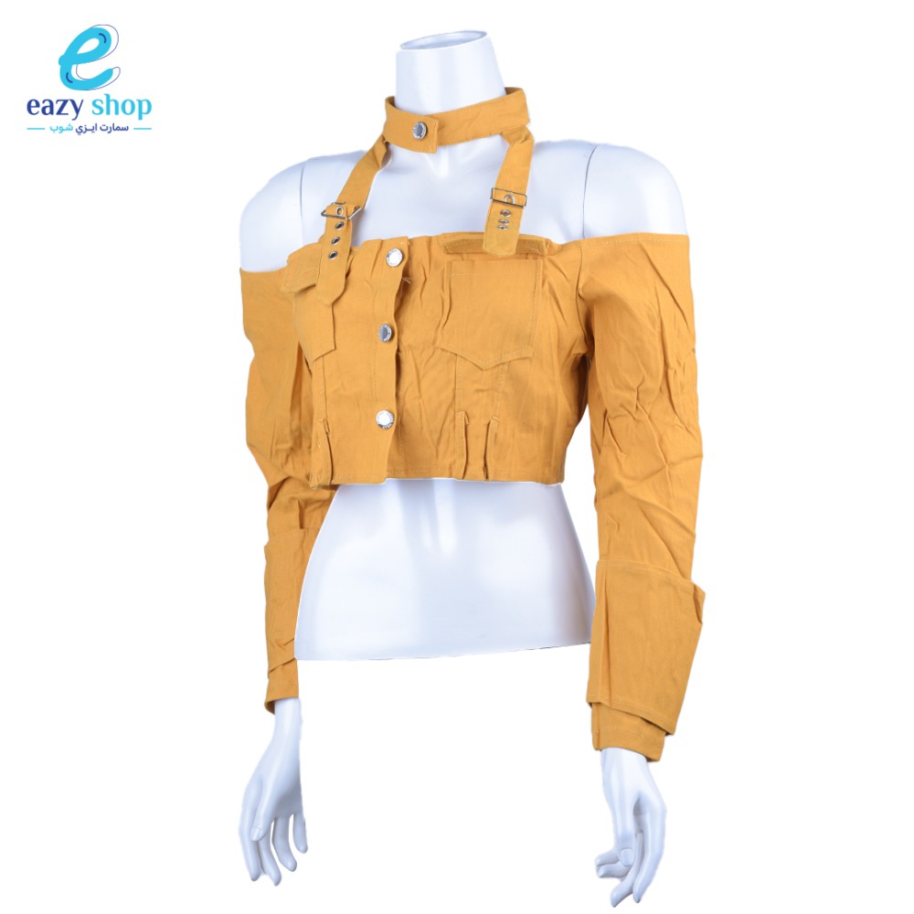 بلوزة نسائي على كتف قصة جذابة وفريدة من نوعها تاتي بحزام دائري على العنق متصل ب اثنين احزمة الى الصدر , موديل كروب توب , كم طويل يضفي اطلاله انثويه ناعمة يتميز بالوانه المتعددة والجذابه
