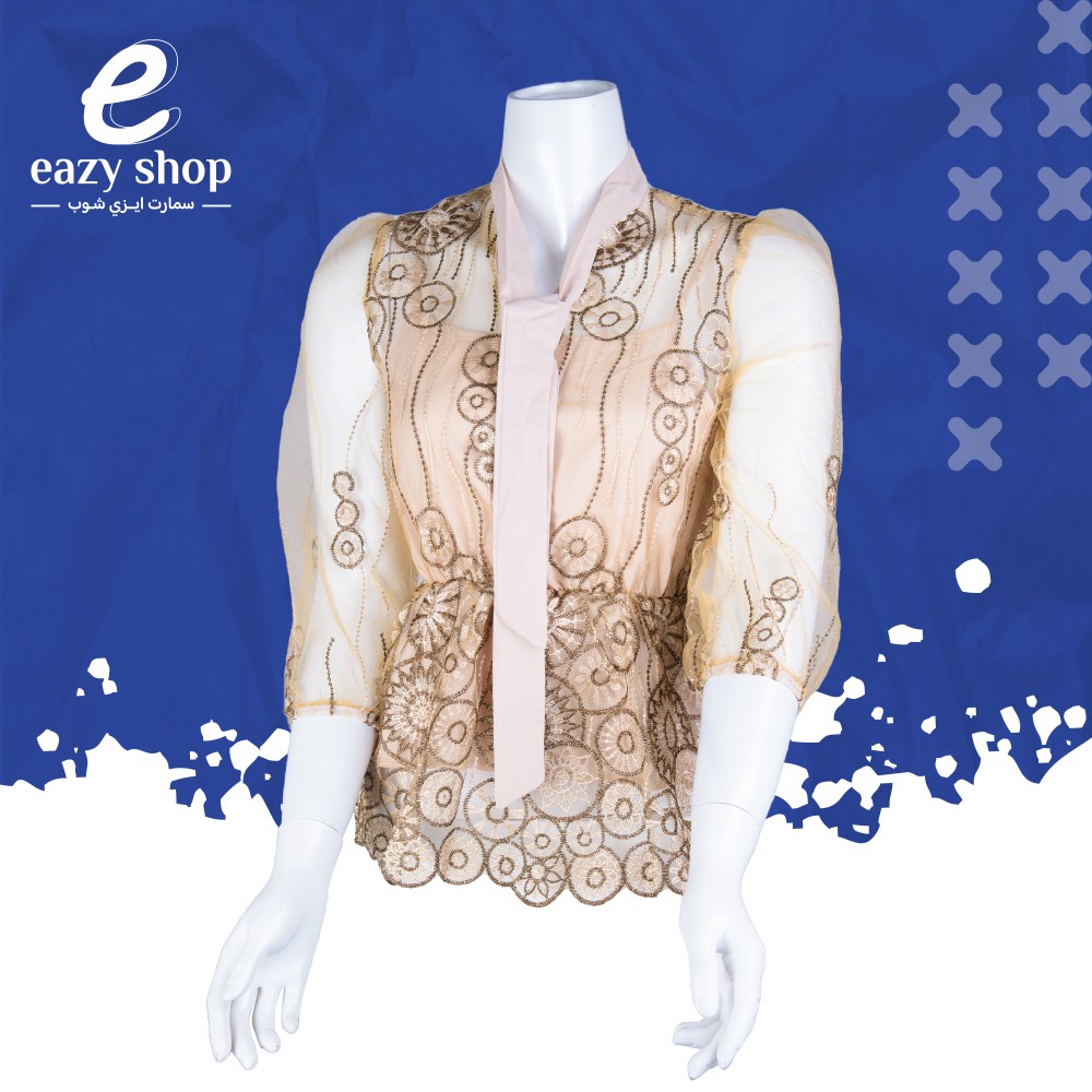 بلوزة نسائي راقي مصنوعة من القطن والاورجانزا مكشوف في الاكتاف نقش دوائر