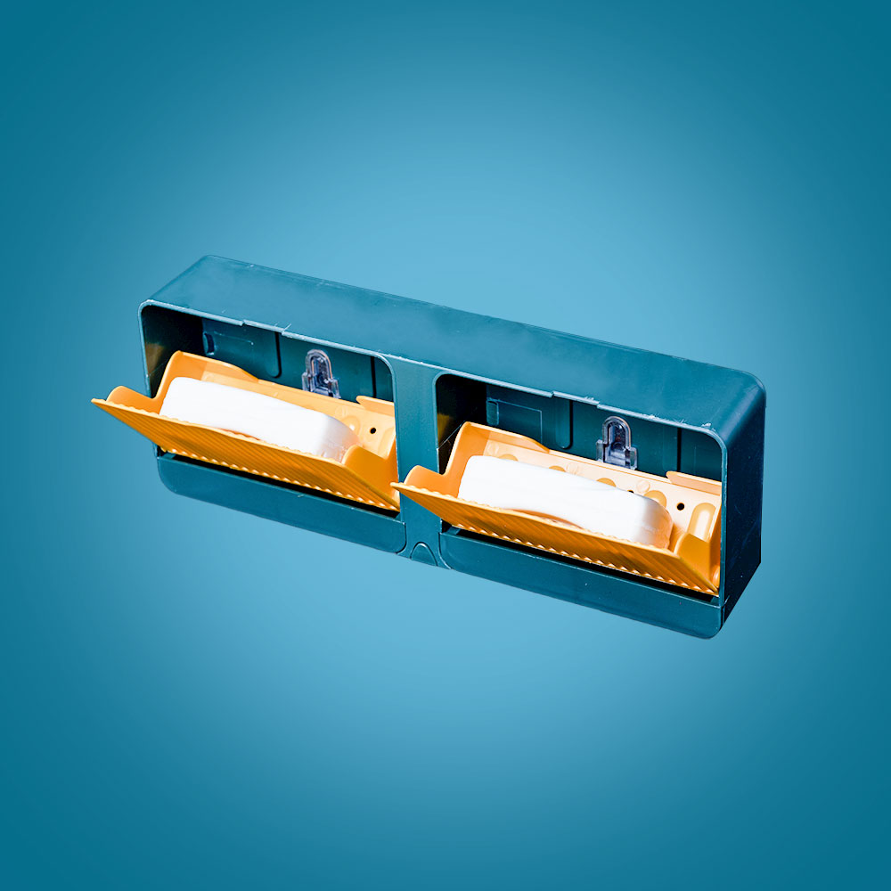 حامل صابون مزدوج بلاستيك يحفظ الصابون من الاوساخ والجراثيم الطائرة والعابرة ويعطي تنظيم وترتيب لأدوات التنظيف الجسدية