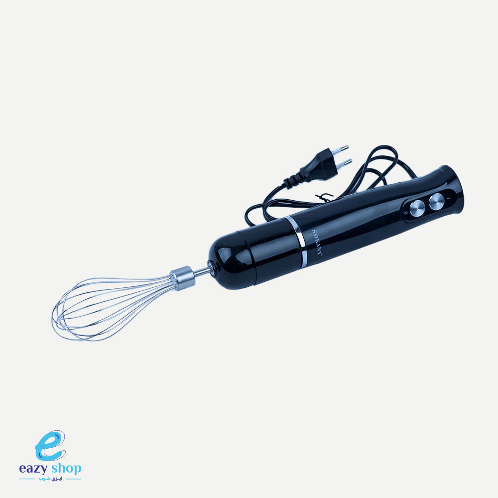 • يأتي الخلاط مع أربعة مرفقات: خلاط يدوي، مضرب بيض، مفرمة لحم، وكوب قياس.