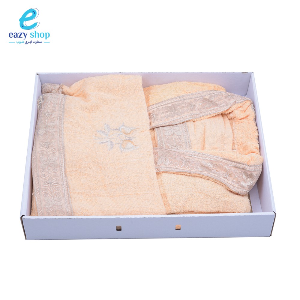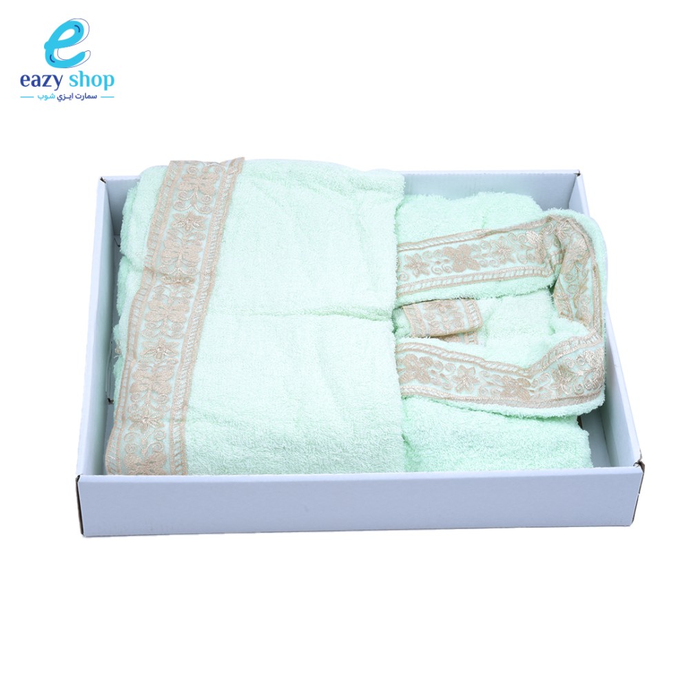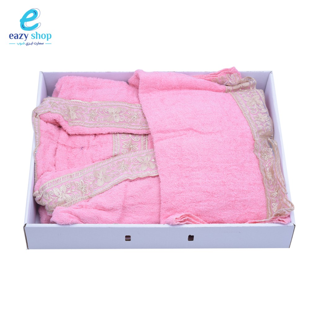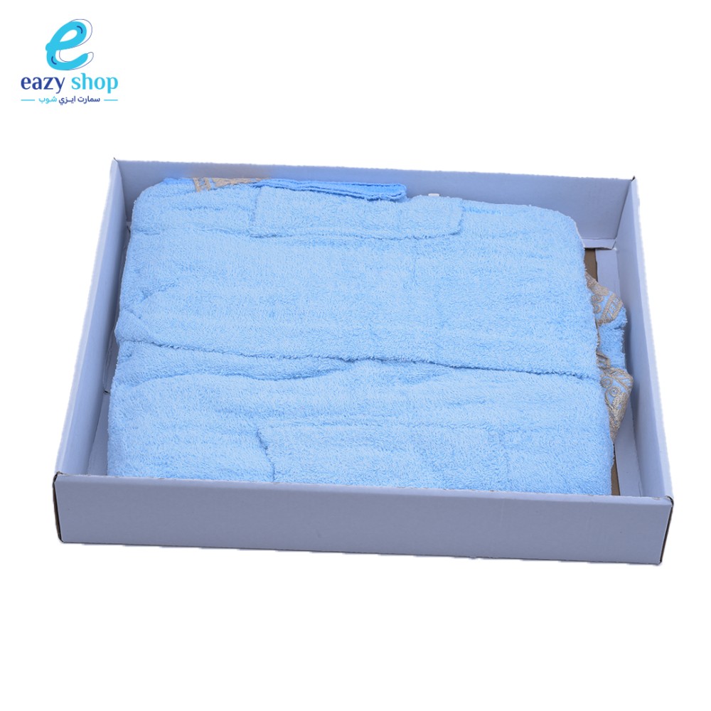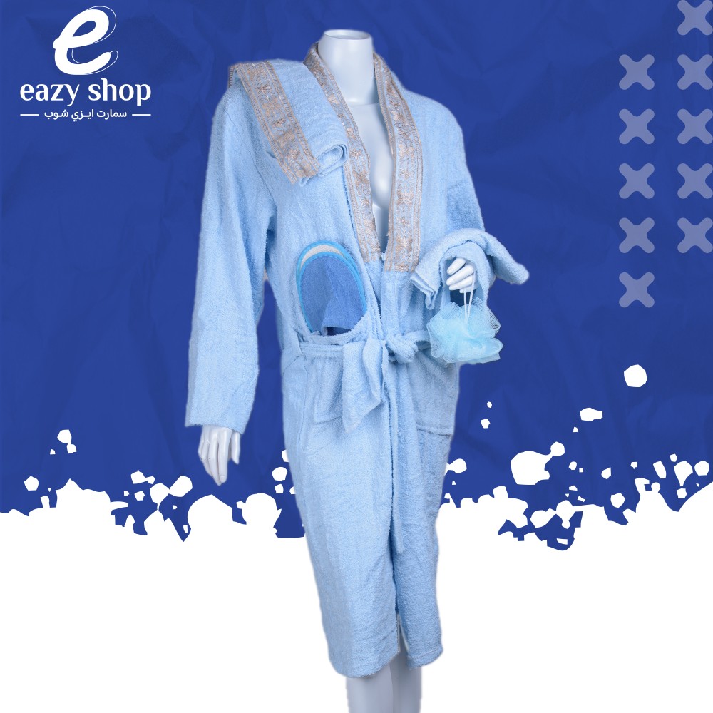 روب حمام ميدي من عدة قطع , مريح وناعم مع ربطة خصر لتعديل المقاس , يتكون من منشفه صغيرة لليدين والوجه , منشفة للجسم , ليفة استحمام ناعمة , شبشب عملي بنفس الوقت , خامه قطن وناعم عالي الامتصاص , ويتميز بالوان مختلفة
