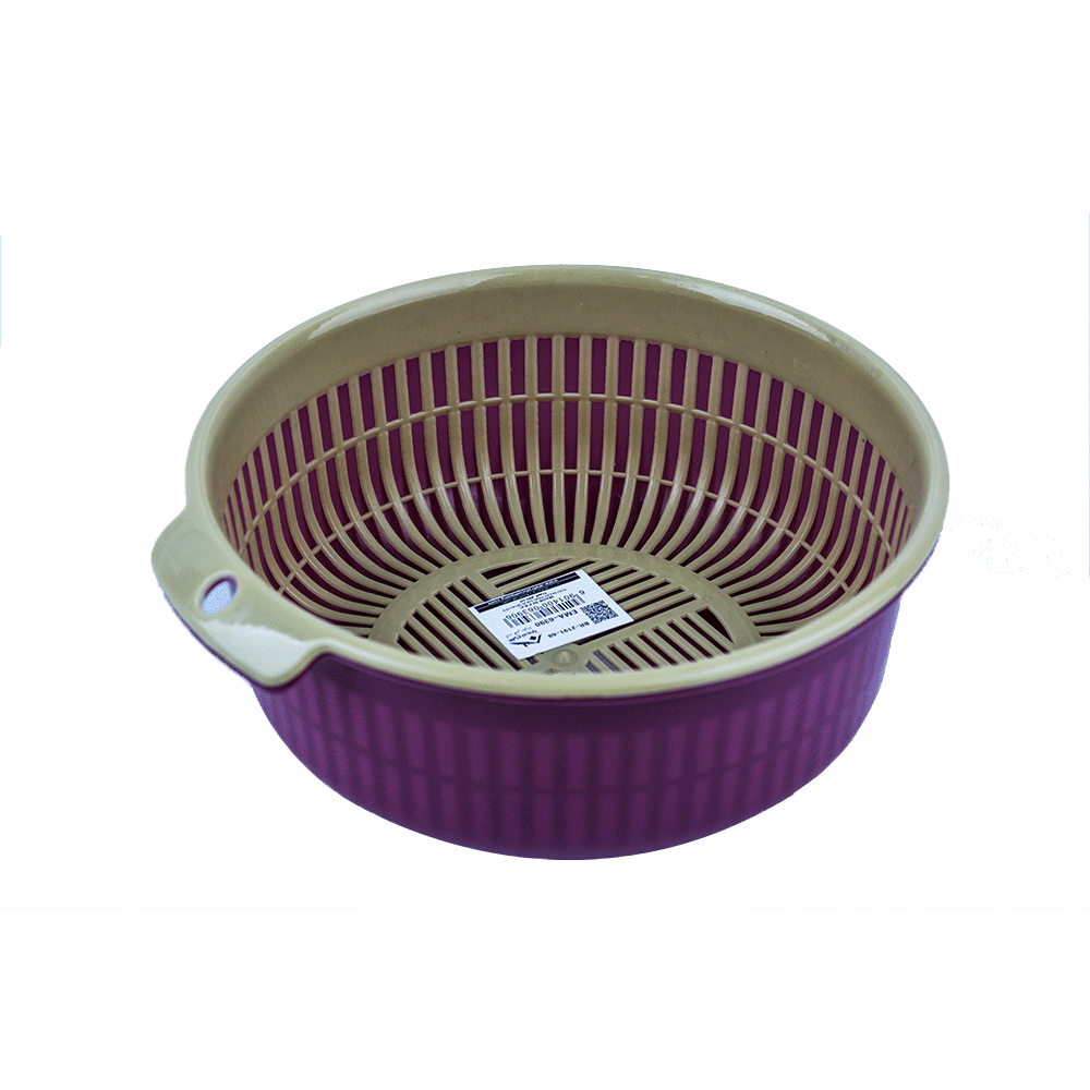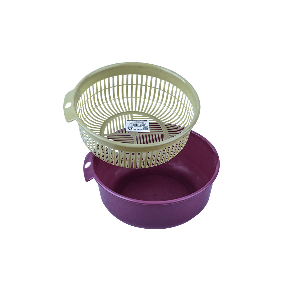 سلة غسيل خضروات مزدوجة الطبقات، مصفاة للمطبخ، وعاء للفاكهة والخضروات، مصفاة مدمجة.