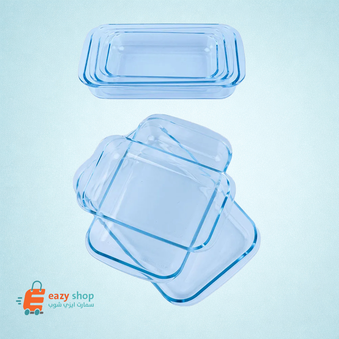 طقم صحون زجاجي حراري مستطيل
