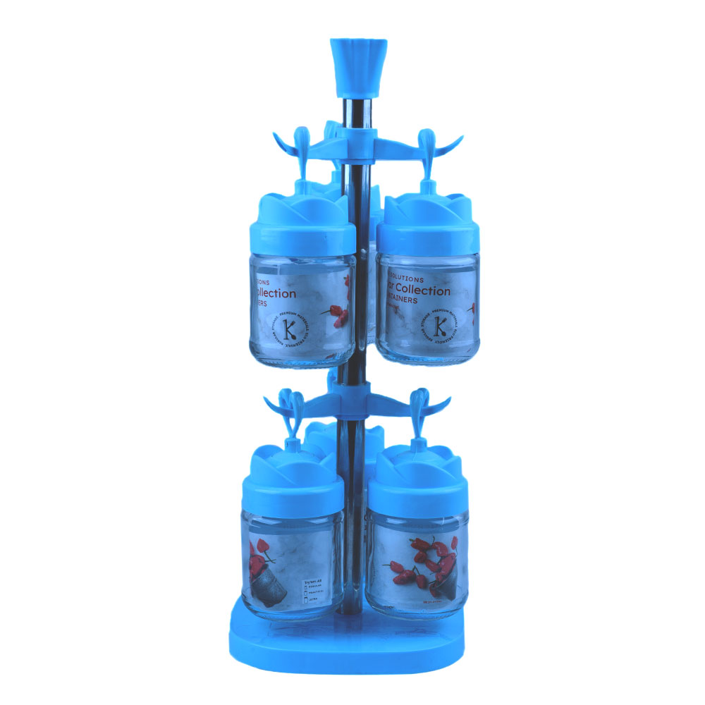 طقم علب بهارات مع قاعدة بلاستيك بشكل عصري يسهل عليك تخزين وحفظ البهارات ويمكنك من الوصول إليها بسهولة