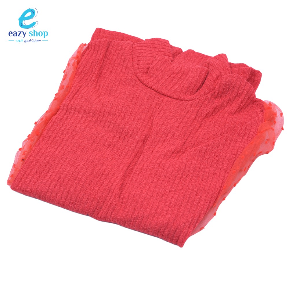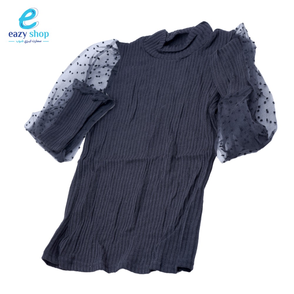 بلوزة صوف على عنق يعطي اطلاله ناعمة وجذابه , اكمام دانتيل منقط على قبضة من الصوف نهاية البلوزة , تتميز بالوانها المختلفة والمميزة