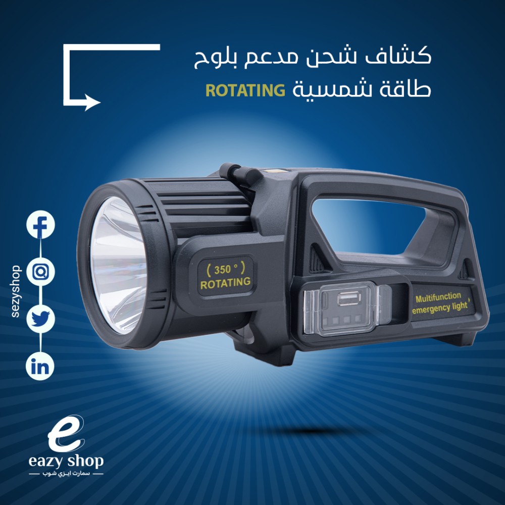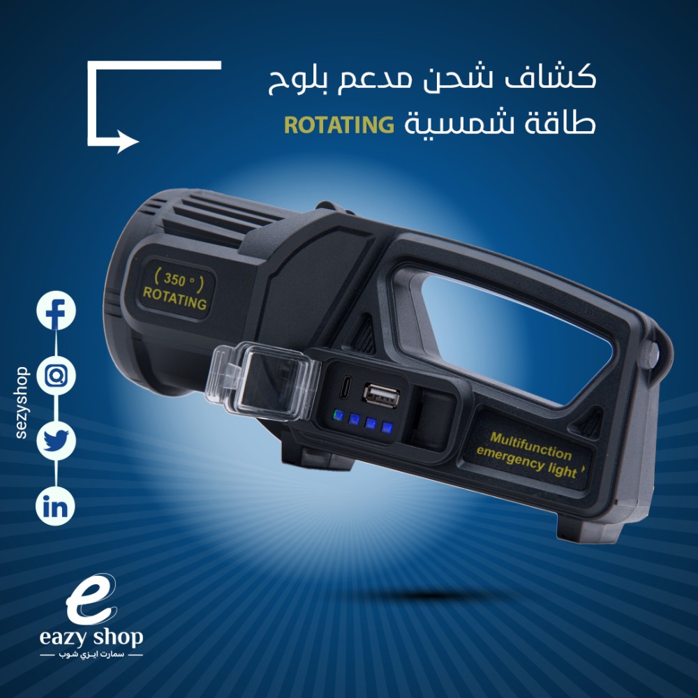 - كشاف يدوي وجهين يشحن من الشمس مباشرة وشاحن USB