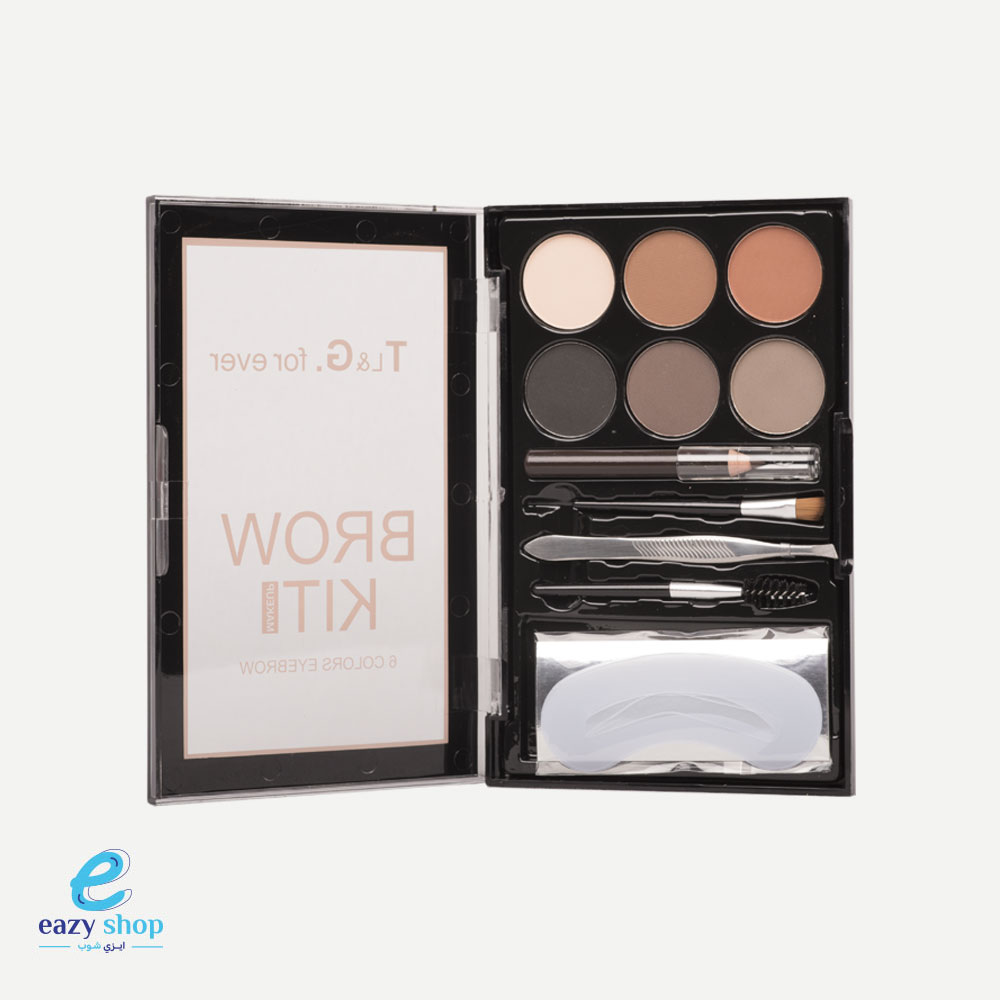 مصحح حواجب 6 الوان مختلفة تناسب الحواجب الغامقة والفاتحة ، مزود ب 5قطع لتصحيح الحواجب (قلم+منطب+2 فرش+بلاستيك لتشكيل الحواجب)